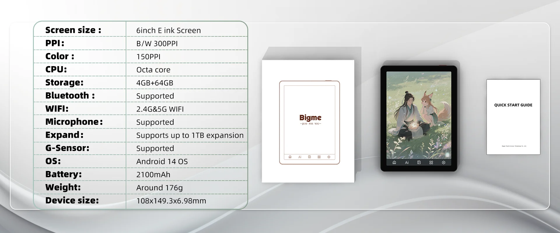 Bigme B6 Electronic book, 6'' color e-ink ebook reader 36-level front light Android 14 OS w/ Google Play, Eye-Protecting ereader