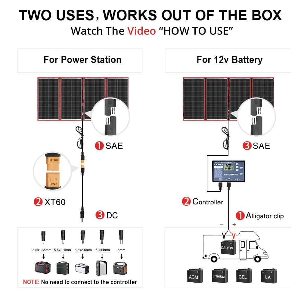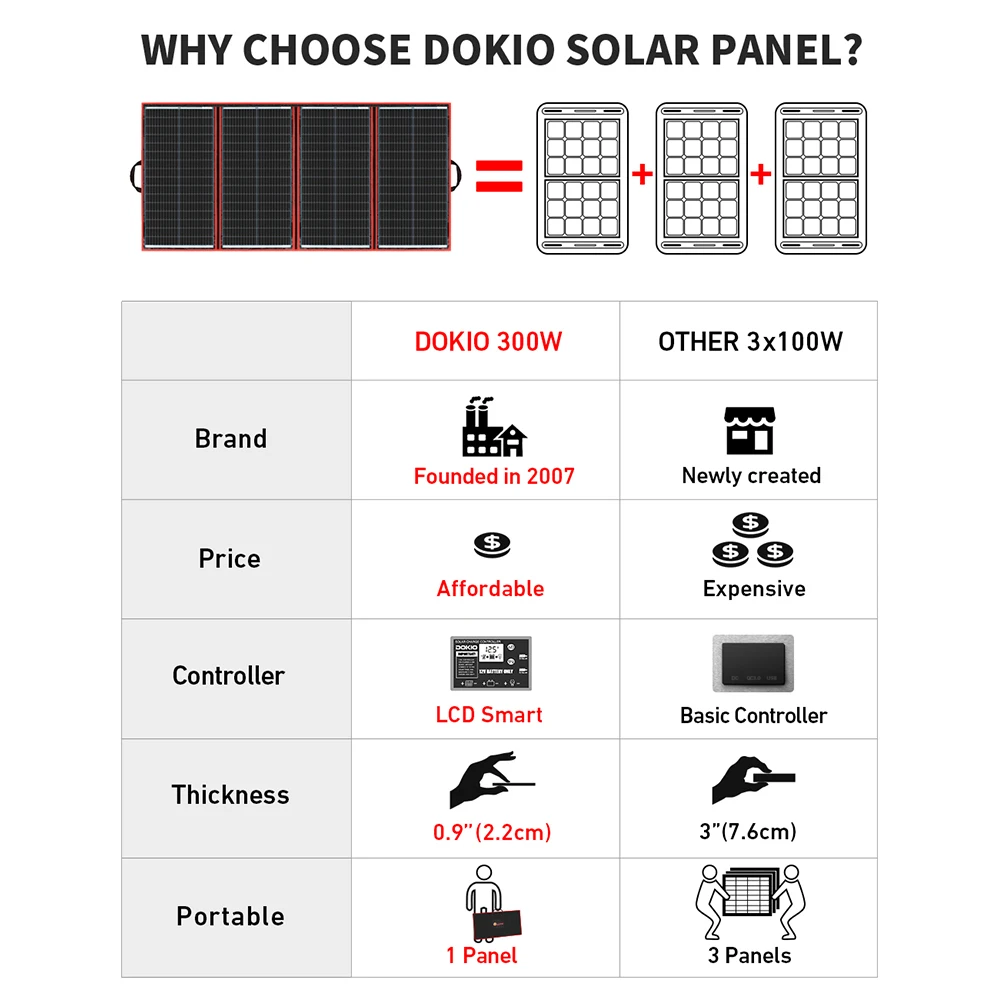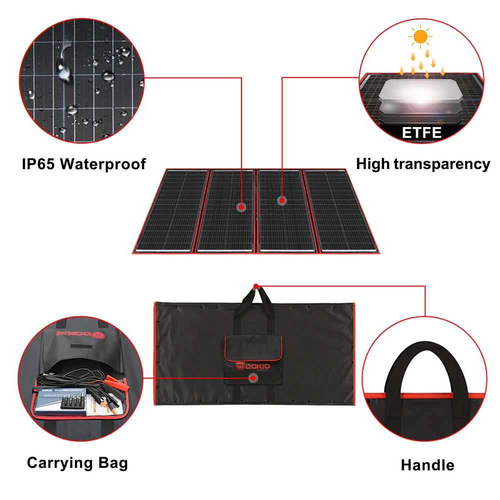 Dokio Portable Foldable Solar Panel 300W with 12V Controller Suitable for Family Camping Trips