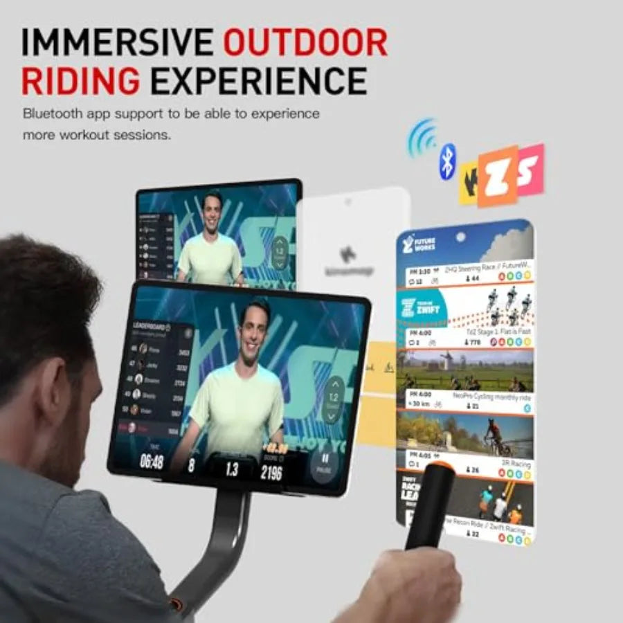 Indoor stationary exercise bike for home fitness with 350 lb weight capacity magnetic resistance workout bike featuring Bluetoo