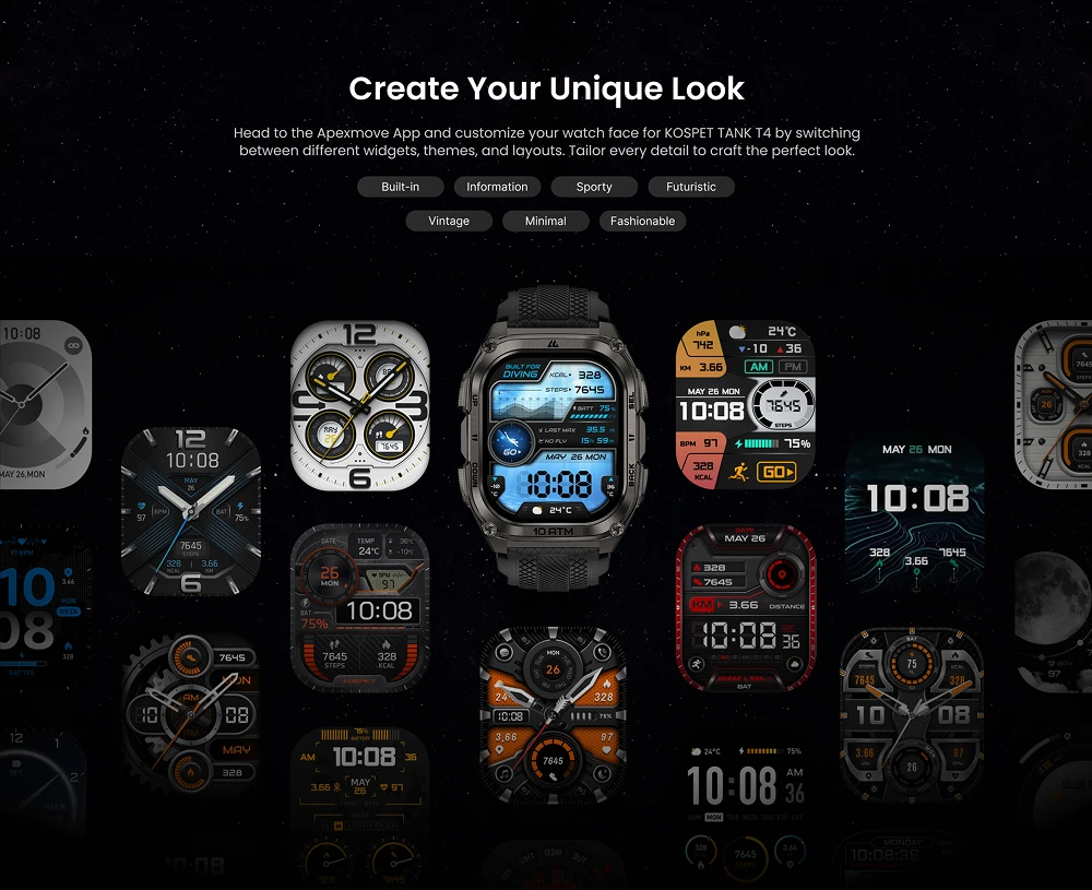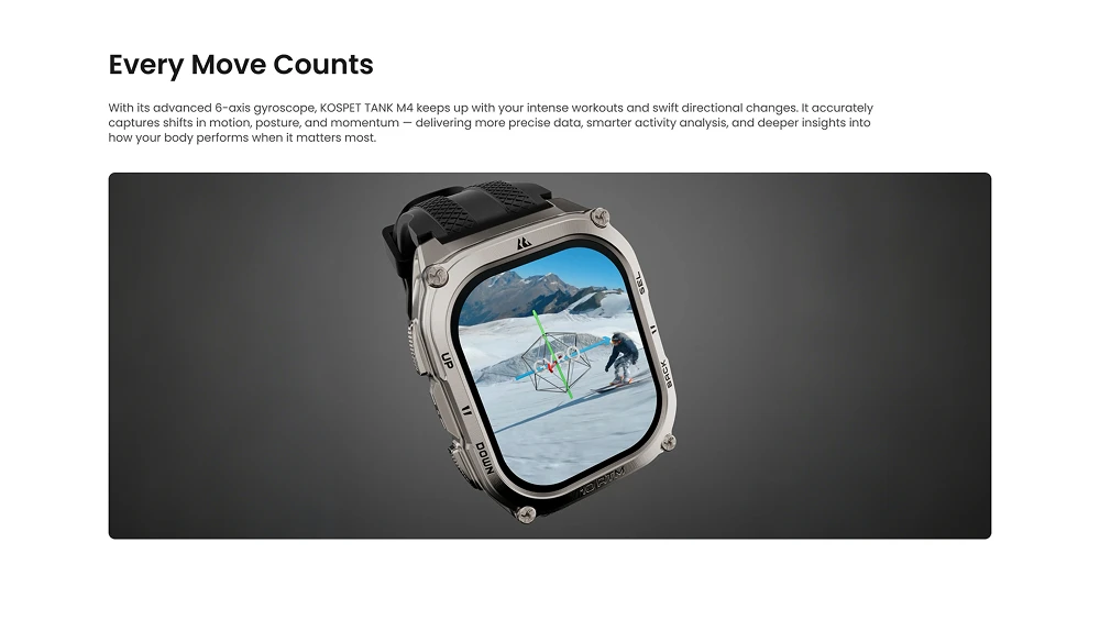 KOSPET smart watches for men is engineered for professional sports, offering 23 ApexMotion sport modes and 160 freestyle training modes. This sports watch built-in 6-axis gyroscope, it accurately tracks changes in orientation, acceleration, and speed-giving you clearer insight into your body’s responses during key moments of activity.