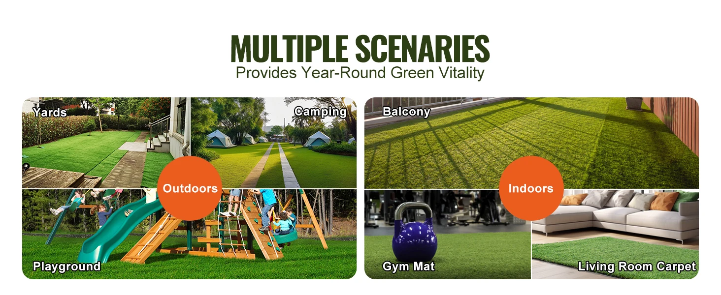 Versatile Applications: This artificial turf is suitable for various scenarios, whether it's outdoor gardens, courtyards, or indoor mats and carpets. It adds greenery to your life. Whether it's a playground for children or a leisure area for family members, you can enjoy the beauty it brings.